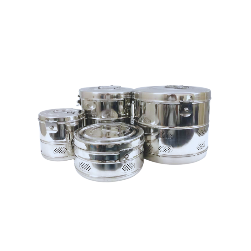 Our range of Dressing Drums includes three quality variants: General Quality, Deluxe Quality, and Super Deluxe Quality. Each variant is crafted from high-quality stainless-steel materials and constructed with heavy gauge stainless steel sheets, ensuring robustness and longevity. These drums are available in various sizes, including 6″X4″, 6″X6″, 9″X5″, 9″X9″, 11″X9″, 14″X9″, and 15″X12″, designed to fit conveniently inside autoclaves for efficient sterilization processes.